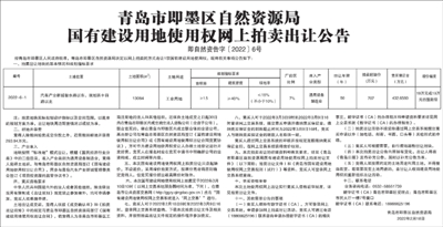 青岛市即墨区自然资源局国有建设用地使用权网上拍卖出让公告