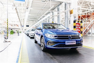 本报3月4日讯 今天下午5时,一辆蓝色的新款宝来轿车从位于即墨区的一汽-大众华东基地缓缓驶下生产线。这是一汽-大众生产的首台宝来MQB PA车型,也是该车型的首次亮相。