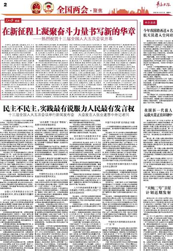 人民日报社论~~~——热烈祝贺十三届全国人大五次会议开幕