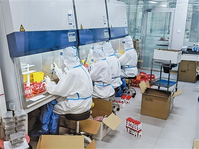 ■百洋医药集团旗下青岛菩提慧生医学检验有限公司对核酸采样进行检验。 百洋供图