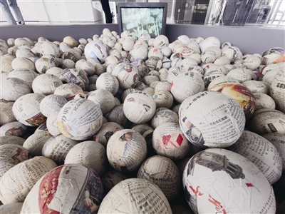 旧报纸包裹的海洋球布满球池,上面的印刷体历历在目,传递来自世界的关乎疫情的消息,远观像是宇宙太空中运行的数不清的星球,抑或是月球上冷白色调的陨石坑。艺术家在美术馆的大厅内,量身定做了一个充满亲切感的游乐场。《想象,你正在漫游》成为整场展览的“开场秀”,而“漫游”的主题,则似乎是对展览观展方式的最佳提示。