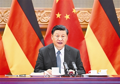习近平指出,当前国际局势持续复杂变化,全球安全、发展面临的困难和挑战显著增多,迫切需要为动荡变化的时代注入更多稳定性和确定性。中国和德国都是有重要影响力的大国。当前形势下,中德尤其需要保持两国关系健康稳定发展,发挥好中德关系稳定性、建设性、引领性作用,这不仅有利于两国人民,也将为世界和平安宁作出重要贡献。
