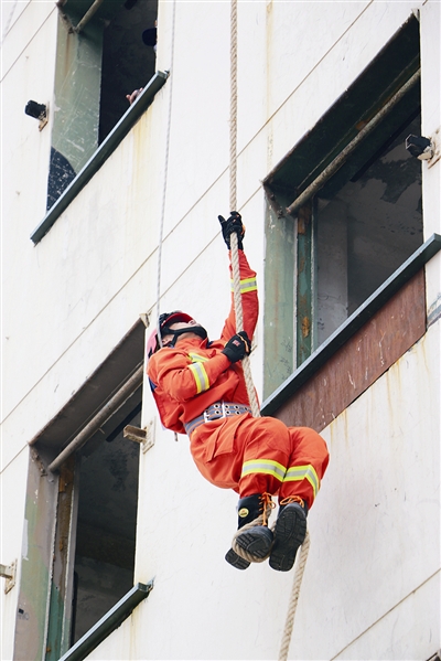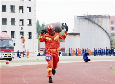 ■5月10日,青岛市消防救援支队在消防培训基地举行尖兵体能对抗比武竞赛。来自全市17个消防救援大队的182名消防员同台竞技。竞赛设置了100米消防障碍、60米肩梯登楼、400米疏散物资、绳索攀爬、5000米长跑、负重上10楼等6个尖兵比武项目,涵盖了基础体能、基本技能、实战操法等训练内容,赛事丰富,科学全面,贴合实战。