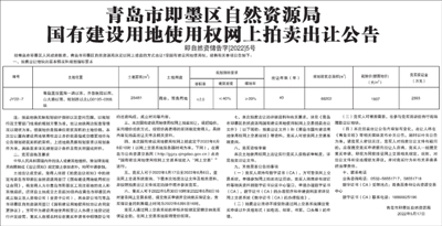 青岛市即墨区自然资源局国有建设用地使用权网上拍卖出让公告