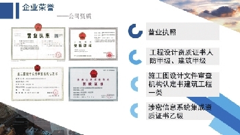青岛市人防建筑设计研究院有限公司具有建筑工程设计甲级资质、人防工程设计甲级资质、城乡规划编制丙级资质、涉密信息系统集成乙级资质、建筑工程一类审图资质。对外从事建筑工程规划、设计;人防工程规划、设计;轨道交通人防防护设备设计、制造及安装工程总承包;人防工程施工图审查等业务。