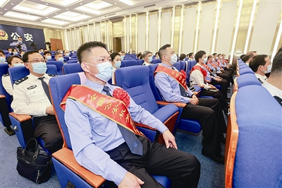 此次大会对近五年来全国公安系统涌现出来的先进集体和先进个人予以表彰。会上,市公安局有3个集体、7名个人受到表彰。其中,某支队三大队、胶州市局胶东派出所被公安部表彰为“全国优秀公安基层单位”,开发区分局红石崖派出所被公安部表彰为“全国公安机关爱民模范集体”;禁毒支队四大队大队长陆琛被人社部、公安部授予“全国特级优秀人民警察”,警务督察支队支队长高妮娜、某支队八大队大队长陈兴隆、交警支队市南大队文登路中队中队长曲建涛、崂山分局指挥中心情报信息科科长唐玉峰、城阳分局流亭派出所所长矫良本被公安部表彰为“全国优秀人民警察”,市南分局刑侦大队七中队中队长陈正华被公安部表彰为“全国公安机关爱民模范”。