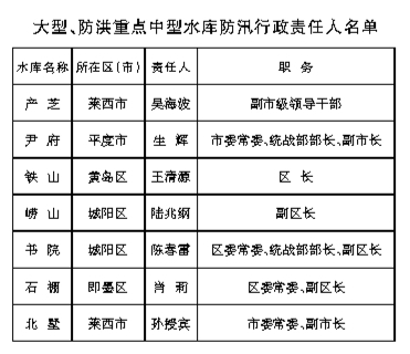青岛市2022年度防汛抗旱防台风行政责任人名单