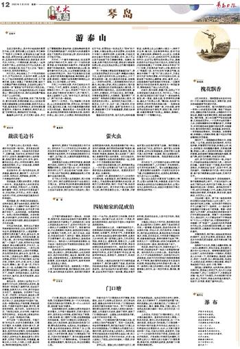 整修后的岱顶天街,虽不及庐山牯岭规模恢宏,也算得上名山之巅的小镇之一。徜徉于白云亭、蓬元坊、五岳真形碑周边,极目可远望,近察如临渊,群峰拱岱,众山若丘,仿佛真的置身于天上人间。这样的好天气,如果是黎明时分,应该可以看到壮观的泰山日出,遗憾的是观日出不在此行的计划之内,但我们还是兴致勃勃地攀上了日观峰,体味当年李白“天门一长啸,万里清风来”的舒心之愉,感受大诗人“凭崖览八极,目尽长空闲”的豪迈气概,在意念中领略了一番“天门夜上宾出日,万里红波半天赤”的绚烂景象。中午时在拱北石畔,全家独享了难得的山巅野餐。面包、酱菜、白水,这些普通得不能再普通的日常饮食,一旦挪到触天近日的岱顶来享用,摇身变为一种顶级享受,清晰地烙在了登山人的记忆里。