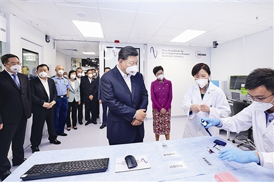 香港科学园是香港最大的科技研发及企业孵化基地,目前拥有1100多家企业和1.7万余名创科从业者,吸引了众多国内外知名科研机构和高校进驻设立实验室。在科学园展厅,习近平听取香港创新科技发展、深港创新科技发展互动、香港科学园发展等情况介绍,观看香港代表性创科企业展示。习近平指出,近年来,在中央支持下,香港发挥自身优势,在基础研究、人才培养、创科产业发展等方面都取得了令人瞩目的成绩。特别行政区政府要把握时代发展大势,把支持创新科技发展放在更加突出的位置,进一步发挥好科技创新的支撑和引领作用。