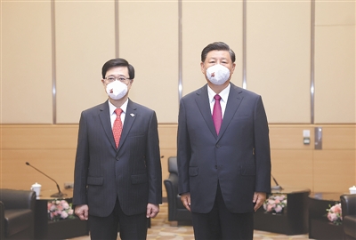 随后,习近平在李家超的陪同下,会见了香港特别行政区新任行政、立法、司法机关负责人。