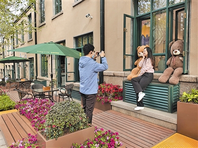 当然,“市井生活”的回归是建立在对城市历史肌理修复的基础之上的。“为了修旧如旧,我们运用‘室内隐蔽、室外可逆’的手法,把原有民居建筑内部进行小尺度局部改造,适合商业经营,外立面则大面积恢复原有清水砖墙,并借鉴德国现有历史建筑的色彩风格,实现街区外立面多变性、相邻建筑有色差的基本面。”市北建投集团历史片区项目前期规划部负责人徐坤介绍,为了最大限度呈现原有街区肌理,项目团队还通过创新铺设方法还原海泊路原有车行道、人行道;窗户保留木窗结构,在内侧增加铝合金窗框和双层玻璃保温,在保留历史元素的基础上兼顾舒适性。