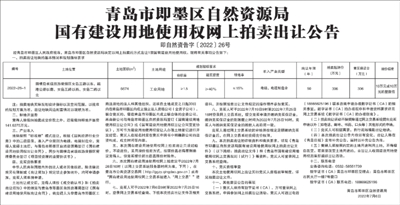 青岛市即墨区自然资源局国有建设用地使用权网上拍卖出让公告