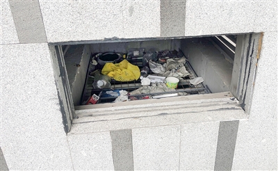 王先生告诉记者,他偶然看到有人往通风井里丢垃圾,才发现了这处卫生死角。通风井内的铁丝网只挡住了“大块头”的垃圾,很多小件垃圾已掉进了通风井内。“卫生死角的存在拉低了广场的整体颜值,希望相关部门派人及时清理,并修补百叶窗。同时在附近增设垃圾桶,彻底消除这一卫生死角。”王先生说。