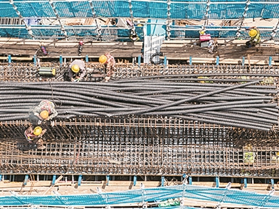 7月19日,记者在辽阳路快速路(福州路-海尔路段)工程现场看到,施工人员紧张忙碌着,工程建设正在如火如荼地推进中。据了解,辽阳路快速路(福州路-海尔路段)工程建成后,将与辽阳路(南京路-福州路段)交通结建工程衔接,组成青岛主城区重要的快速路网。 刘栋 摄