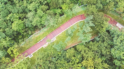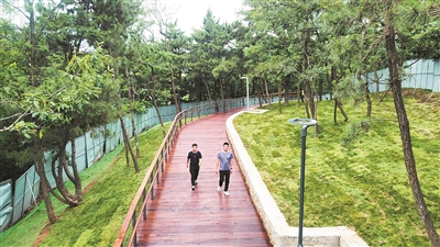 在浮山市南段银川西路入口处,记者看到,百余米的景观栈道示范段已经建设完成,翠绿的植被间掩映着棕红色的木质廊道,道路口上的指示标牌和智能灯杆已经就位。市南区公园城市建设指挥部办公室工作人员孙伟介绍,浮山市南段防火通道(绿道)改造提升工程一期计划新建绿道长度4983米,改建绿道长度1448米,并对绿道沿线两侧实施山林抚育及绿化修复提升,新增休闲驿站、公厕、绿道标识系统、园林小品等景观设施。目前,绿道建设已经过半,栈道建设全面展开,计划9月底前完成绿道系统建设。