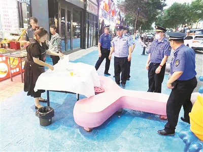 行动期间,市南区、崂山区综合行政执法局与辖区公安机动(治安)大队启动联勤联动机制,建立联合巡查队伍,对重点区域开展不间断巡查;属地中队对主要旅游景区问题高发区域和群众反复投诉的问题点位,定人定岗,重点盯防,确保店外经营、游商浮贩、露天烧烤等市容秩序突出问题一经发现,坚决依法取缔;对于市民持续投诉和反复回潮的,坚决立案依法查处,顶格处罚。同时,市南区、崂山区公安机动(治安)部门依据职能密切配合,强化综合行政执法保障效能,加大对涉嫌阻碍执法、暴力抗法治安刑事案件的查处力度,维护法律权威,确保行政执法秩序。