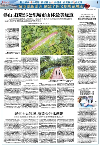 ~~~三区联动加速推进工程建设。建成后将兼具市民绿色出行和生物迁徙等功能,形成“北望观城,南眺观海”特色游线