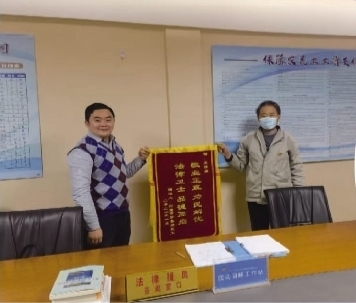 拿到欠薪后,这些河南籍的农民工非常激动,赶制了一面印有“敬业正直为民解忧,法律卫士品德高尚”的锦旗送到联动调解工作站,并向工作人员和律师连声致谢。