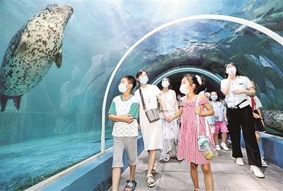 今年,由青岛市教育局、青岛日报社联合主办,青岛市天泰公益基金会支持的2022年青岛市中小学生暑假绘画(创意设计)比赛恰逢十周年。本届比赛的主题是“我和青岛的蓝色梦想”。为引导广大中小学生关心海洋、认识海洋,加深中小学生对“蓝色青岛”的理解,激发绘画创作灵感,主办方与青岛水族馆合作,于7月底8月初面向参赛选手推出海洋主题公益研学。研学报名通知刚一发布,不到10分钟80个研学名额就被抢光。之后还不断有家长在群里接龙“报备”,希望能捡到补位的机会。“我们很看重研学活动是由哪里组织的。我一看这次活动是由青岛日报社和水族馆组织的,就赶紧报名了。”崂山育才学校一位五年级的学生家长说,孩子们在前排听讲,家长们在后排等候,水族馆专家生动的讲解和标本实物对照的形式让家长们不由自主放下手机,和孩子一起沉浸到海洋生物的世界。“这不是花钱就能买到的体验,所以选择活动首先要看主办单位。”