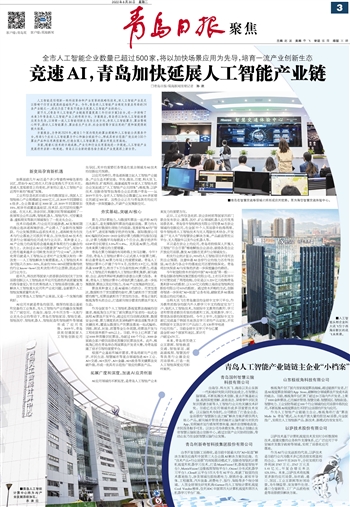 前不久,《青岛市人工智能产业链高质量发展三年行动方案》出台,进一步清晰了未来3年青岛在人工智能产业上的布局方向。方案提出,青岛将以加快人工智能场景应用为先导,以培育一流人工智能创新生态为主攻方向,夯实人工智能算力、算法等核心环节,推动人工智能算力、算法在生产生活、社会治理等方面应用的广度和深度得到极大拓展。