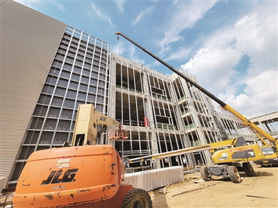 去年10月,由BOE(京东方)投资建设的全球最大显示模组制造单体工厂在青岛正式落地,项目于6月21日提前63天实现主体结构全面封顶,将于11月份实现首片点亮,达产后将实现年产值超100亿元。走进项目现场,叉车、吊车、运输货车等各类车辆正马力十足搬运物料;模组厂房内部,建筑工人也在热火朝天地忙碌着,调试线路、清洁墙面、装饰装修……“目前项目总人力投入达3500余人,厂房区及生活区同步施工;昼夜奋战,提前10天完成临建施工,提前20天完成桩基施工,提前15天完成生活区餐厅主体结构封顶;并且仅用36天实现模组厂房首段主体结构封顶,创造京东方模组厂房施工的最快速度。”中建三局青岛京东方项目生产经理王汉卫介绍,项目目前进入室内装饰装修,室外园林绿化阶段。
