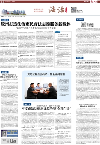 为深入总结法治为民办实事实践成效,积极展现推广经验做法和典型案例,青岛市委依法治市办日前印发《关于青岛市2021年度法治为民十件实事推荐评选结果的通报》,公布青岛市2021年度法治为民十件实事——