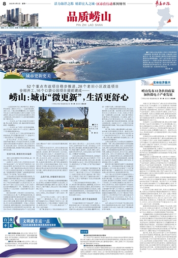 一边是张村河片区、株洲路片区、跨海大桥连接线二期的大干快上,一边是市政道路、老旧小区、口袋公园的精雕细琢,在打造新时代社会主义现代化国际大都市示范窗口区的进程中,崂山区不仅在涉及未来发展的大项目上持续加码,更在改善当下人居环境的细微处狠下绣花功夫。