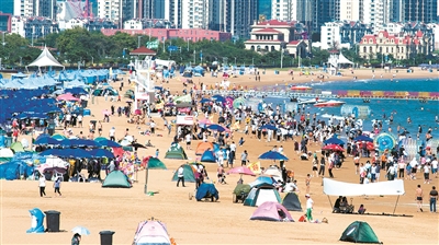 ■中秋小长假期间,人们用多种方式休闲放松。记者在西海岸新区的凤凰山公园、金沙滩景区、唐岛湾公园的露营地看到,沙滩、草地上绽放出数不清的“帐篷花”。近年来,户外露营热度不停攀升,成为深受人们欢迎的休闲度假方式。