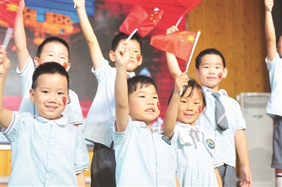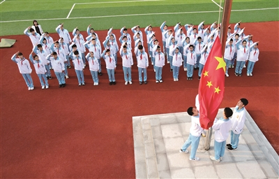本报9月30日讯 国庆节前夕,青岛市中小学、幼儿园纷纷开展“向国旗敬礼”、国庆主题班会、文艺展演等活动,通过丰富多彩的庆祝形式将“迎接国庆节”活动变成了思政课堂,以潜移默化的方式培育孩子们的爱国情怀。