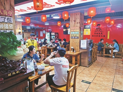 “夜场的客人主要集中在凌晨5点以前,分为22点、凌晨2点、凌晨4点三个就餐高峰时段。”薛虎介绍,客人中既有加班的白领、夜班的职员,也有各地的游客。