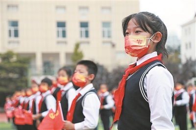 | ■近日,“喜迎二十大 争做好队员”青岛市少先队主题队日活动在青岛市市南区实验小学教育集团举行。活动通过丰富多彩的形式,带领少先队员了解党史故事,传承红色基因,喜迎党的二十大胜利召开。 |