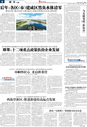 本报10月19日讯 城市黑臭水体是百姓反映强烈的水环境问题,不仅损害城市人居环境,也严重影响城市形象。近日,市水务管理局、市发改委、市生态环境局等五部门联合印发《青岛市深入打好城市黑臭水体治理攻坚战实施方案》,持续推进城市黑臭水体治理,巩固治理成效,不断改善城市水环境质量。《方案》提出,到2024年底,各区 (市)建成区黑臭水体全部清零。