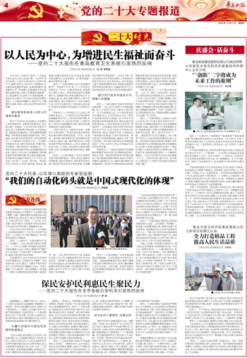 党的二十大报告提出“全面推进严格规范公正文明执法,加大关系群众切身利益的重点领域执法力度,完善行政执法程序,健全行政裁量基准”。全国优秀人民警察、市南交警文登路中队中队长曲建涛表示,“作为一名基层交通民警,将充分发挥党员的模范带头作用,立足基层公安交通管理岗位,带领中队全体民辅警旗帜鲜明讲政治,忠诚履职保畅安,以‘事争一流、唯旗是夺’的进取精神,从严、从紧、从实抓好维护交通安全各项工作,以实际行动忠诚践行党的二十大精神。”