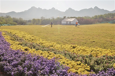 初秋的浮山美如画。从银川西路劲松三路路口处进入市北浮山生态园,一路向东登高,步行百米后,偌大草坪映入眼帘,视野豁然开阔。日前铺设的草皮透着嫩绿,黄色、紫色的花间隔栽种,形成带状环绕草坪,像是给草坪镶上了花边。山林里空气新鲜清冽,林中鸟鸣婉转。