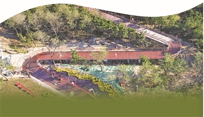 ■空中俯瞰市南区浮山绿道架空栈道和落地栈道。   本版摄影 邢志峰
