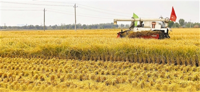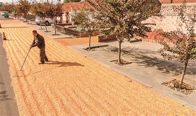 沃野田畴间,机械轰鸣,一台台收割机正开足马力来回穿梭;乡野晒场里,伴随着哗啦啦清脆声音,金黄的玉米摊匀晾晒;果树林地中,传来果农的欢声笑语,沉甸甸的苹果压弯枝头……希望的田野上,正奏响“丰收曲”。