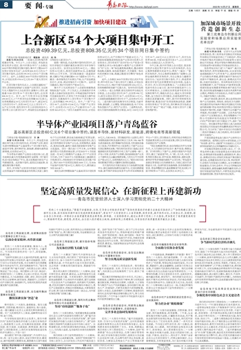 在项目集中签约仪式上,上合新区虚拟电厂项目、诺浩绿色智能矿山装备产业园项目、文远知行无人驾驶汽车北方总部项目、国橡中心项目、超级港TOD项目等34个项目集中签约,总投资808.35亿元。其中,30个内资项目总投资额690.85亿元,4个外资项目总投资额18.1亿美元;投资规模超过10亿元的项目有26个,超过50亿元的项目有8个,投资100亿元以上项目有1个。从产业方向看,签约项目中有上合创投风投中心项目等上合元素项目10个,青岛航空总部基地项目等临空元素项目5个。