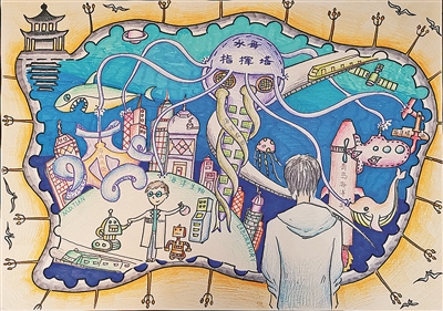 在“青岛教育家”微信公众号后台,有不少家长留言说,孩子非常认真地准备参赛作品,暑假中每天拿出两三个小时来画画,一笔一笔细细描绘,前前后后画了将近半个月才“大功告成”。确实,有许多参赛作品构图复杂、要素丰富、色彩斑斓、笔法细腻,倾注了孩子们的大量心力,令人赞叹不已。他们就像一位位“缔造者”,在自己的“思想版图”上,从一砖一瓦开始,一点点构建出了“梦想之城”。