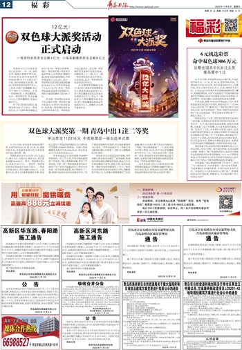 12亿元!~~~一等奖特别奖奖金总额4亿元 六等奖翻番奖奖金总额8亿元