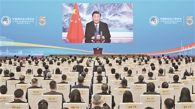 习近平指出,5年前,我宣布举办进博会,就是要扩大开放,让中国大市场成为世界大机遇。现在,进博会已经成为中国构建新发展格局的窗口、推动高水平开放的平台、全球共享的国际公共产品。