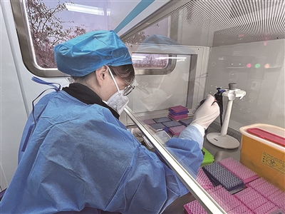 打赢疫情防控遭遇战、阻击战、歼灭战,大规模核酸检测的速度是一种“决定性”的力量。抗疫的战场上,除了冲锋在前采样的“大白”,还有一群在核酸检验实验室里昼夜埋头与病毒“正面交锋”的“侦察兵”。11月9日,记者走进市疾控中心移动PCR检验实验室,见证着那些“幕后英雄”争分夺秒与病毒赛跑的身影。他们无数次与病毒“亲密接触”却毫不畏惧,只一心想着要以最快的速度揪出病毒,为疫情防控筑牢严密的“防护墙”。
