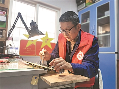 “我家的衣橱折页坏了,能不能来家里给修修”“我家的表怎么走着走着就慢了,换电池也不管用”……19日中午,匆匆吃过午饭的沈海涛正在维修室里研究一个送修的电视线路板,没一会儿,他的电话便接二连三响起来。“下午,给李培友老人理发,给居民修衣橱折页、钟表……”他在工作台账上记下要做的工作,便带着工具箱出发了。
