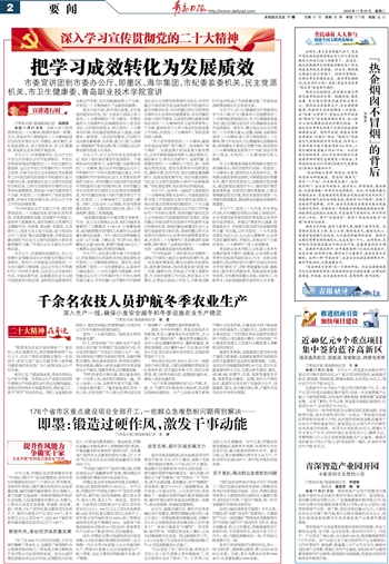 本报11月21日讯 为深入学习宣传贯彻党的二十大精神,根据市委统一部署,今天,青岛市学习贯彻党的二十大精神宣讲团分别到市委办公厅、即墨区、海尔集团、市纪委监委机关、民主党派机关、市卫生健康委、青岛职业技术学院开展宣讲。