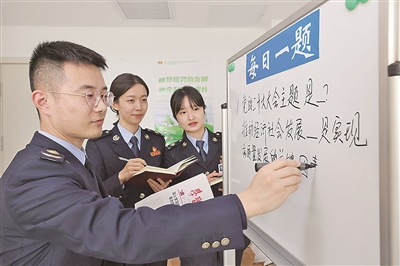 ■近期,国家税务总局青岛市市北区税务局通过“读报告、看报道、微党课、读书分享会”等多种形式,学习宣传贯彻党的二十大精神。图为青年党员正在通过“每日一学”活动推动党的二十大精神在基层落地生根。 万云军/图 李昌峰/文