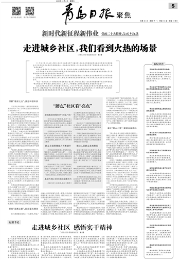 党的二十大胜利召开后,青岛各城乡社区认真学习贯彻落实党的二十大精神,把大会精神和社区工作实际相结合,坚持在发展中保障和改善民生,用心、用情、用力解决居民急难愁盼问题,不断为实现人民对美好生活的向往而奋斗。