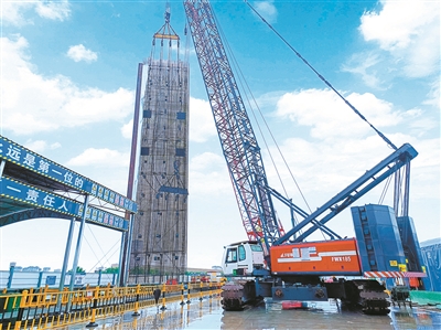 两台液压履带式起重机高举塔臂紧张搬运重物,工作人员正在焊接钢筋笼,大型成槽机正在下挖,准备将焊接好的钢筋笼放入地槽、浇筑混凝土,做成一面地连墙……在大沽河博物馆站下一站少海北站,工作人员正在开展地连墙围护施工。这个车站长度218米,宽度20.1米,是地下两层岛式车站。“目前,我们已经完成该工序工程量的82%,预计12月中旬全部完成。”中交一航局工区项目经理刘君介绍。