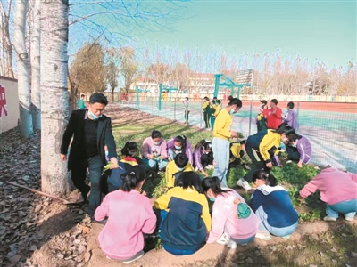 铺集小学操场西侧的“勤耕园”里,学生在教师的带领下种植蔬菜,体验学校开设的“劳动+”校本课程。“劳动+数学”让孩子们在劳动中测量计算土地面积,“劳动+语文”“劳动+美术”让孩子观察学习,在劳动中完成作文、风景写生。铺集小学校长黄涛说,学校致力于构建“全人教育”的课程体系,依托特色校本课程,提升学生的综合素养。
