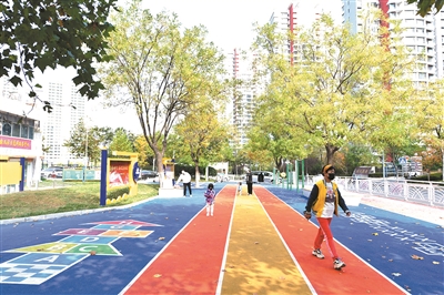 漫步在合肥路佳世客附近,笔者看到不少市民正在一处新建好的篮球场里打球,这一侧篮架下,一场三人制比赛激战正酣,漂亮的软塑地面、崭新的球架在夕阳下反射出柔和的光芒,加油声与欢笑声融为一体,让人感受到运动的激情与活力。在场地另一侧的篮架下,家住四季景园小区的刘津津带着刚放学的女儿在练习投篮。