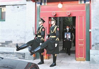灵车缓缓驶出中南海,在中南海工作的干部职工纷纷来到道路两旁,胸佩白花、神情凝重,为江泽民同志送别。
