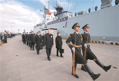 扬州舰驶入奔涌的长江,驶向浩瀚的大海。军舰徐徐航行,告别上海这片江泽民同志经历青春岁月,长期工作、奋斗、奉献的土地。